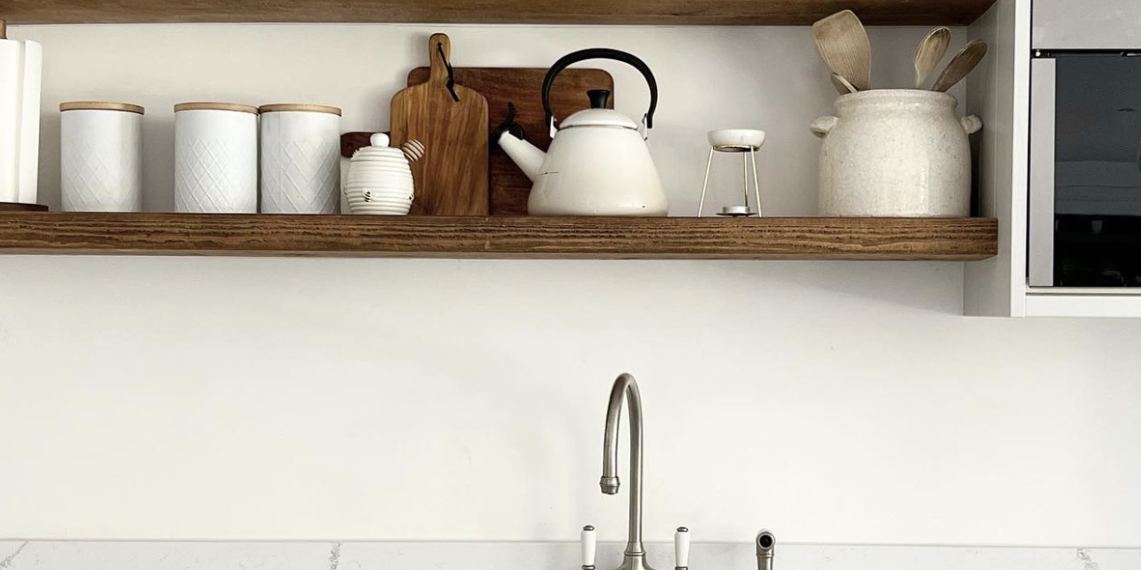 Les tons couleur terre et les matériaux naturels, notamment les surfaces de travail en bois récupéré et les robinets en laiton tels que notre collection Mayan en laiton vieilli, peuvent réchauffer un design de style scandinave, comme dans la maison de @simplyscandikatie’s maison.